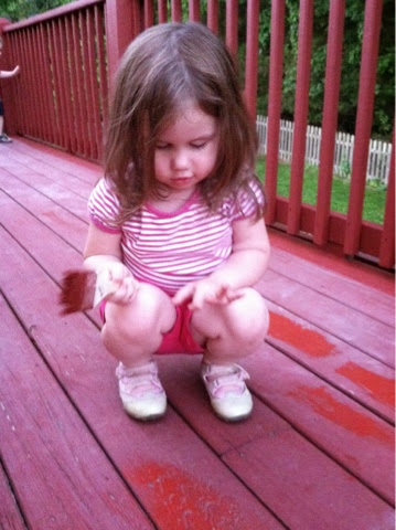 Me and Bailee got started with the staining during B&B's nap time. She's a good deck staining partner.